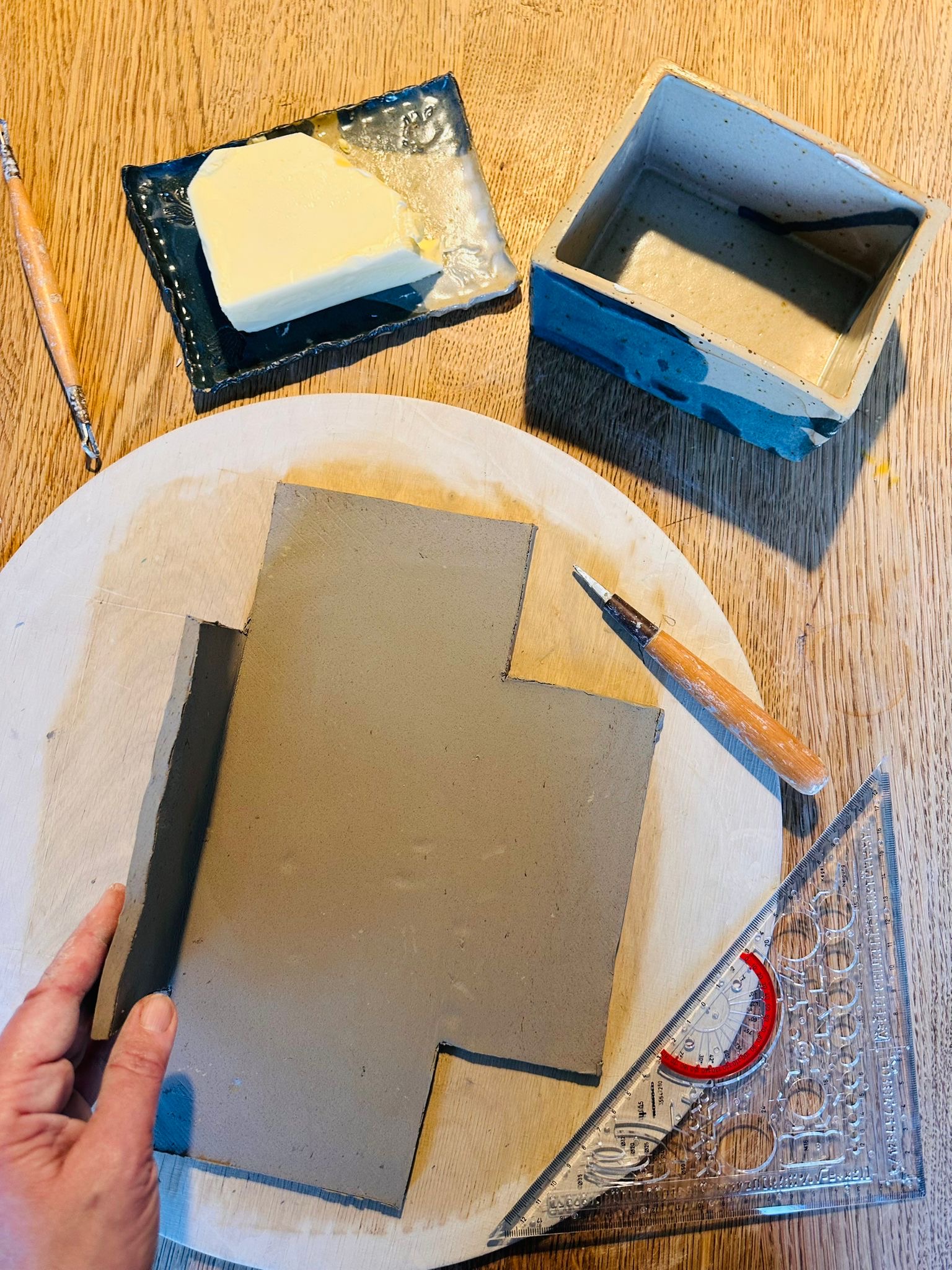 Du hast schon etwas Erfahrung im Handbuilding mit Ton? In diesem Kurs arbeiten wir mit selbst ausgerollten Tonplatten. Ich zeige Dir Schritt für Schritt was du beim Arbeiten mit der Plattentechnik beachten musst. Die gebrannten und glasierten Dosen kannst Du nach ca. 4-6 Wochen abholen.